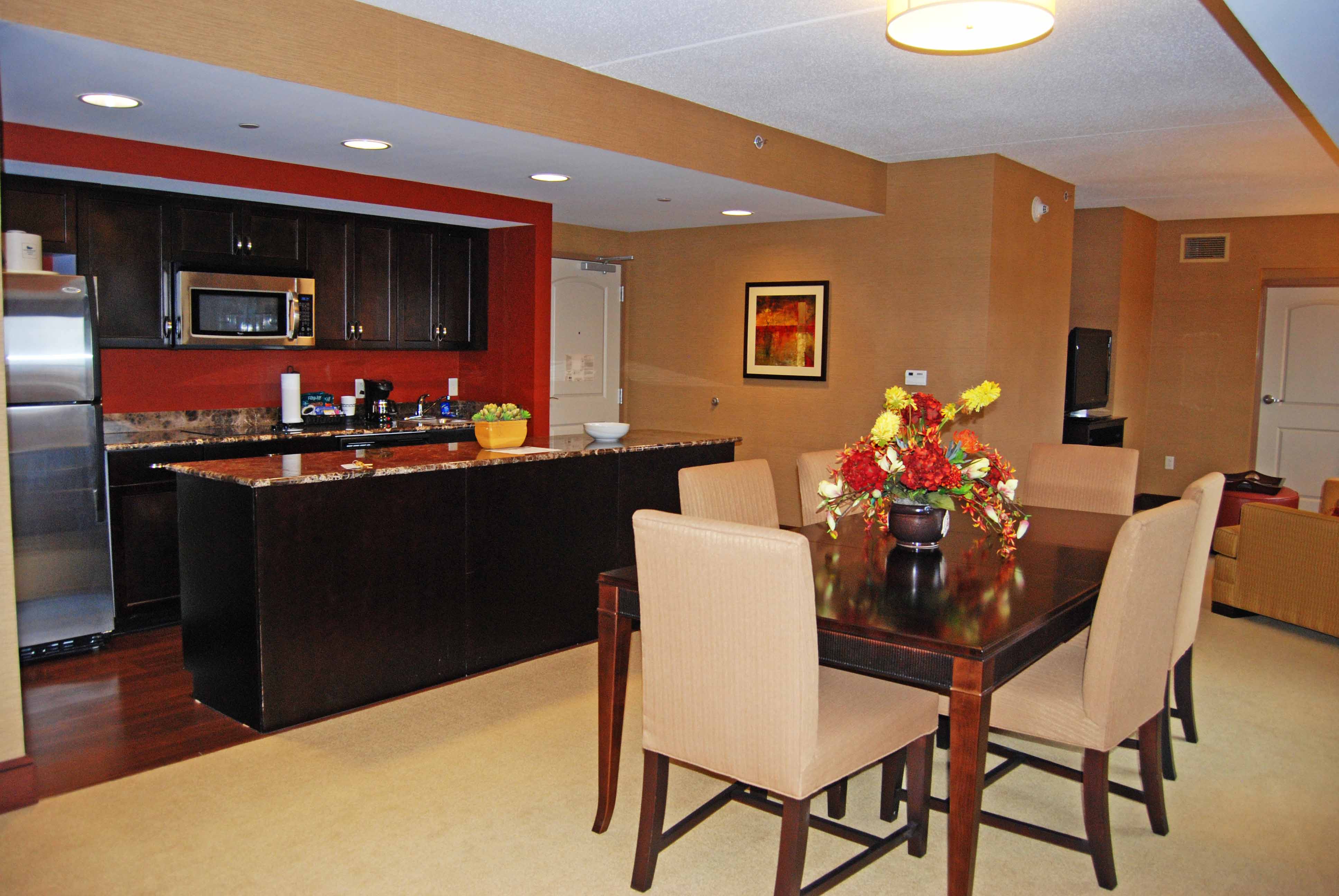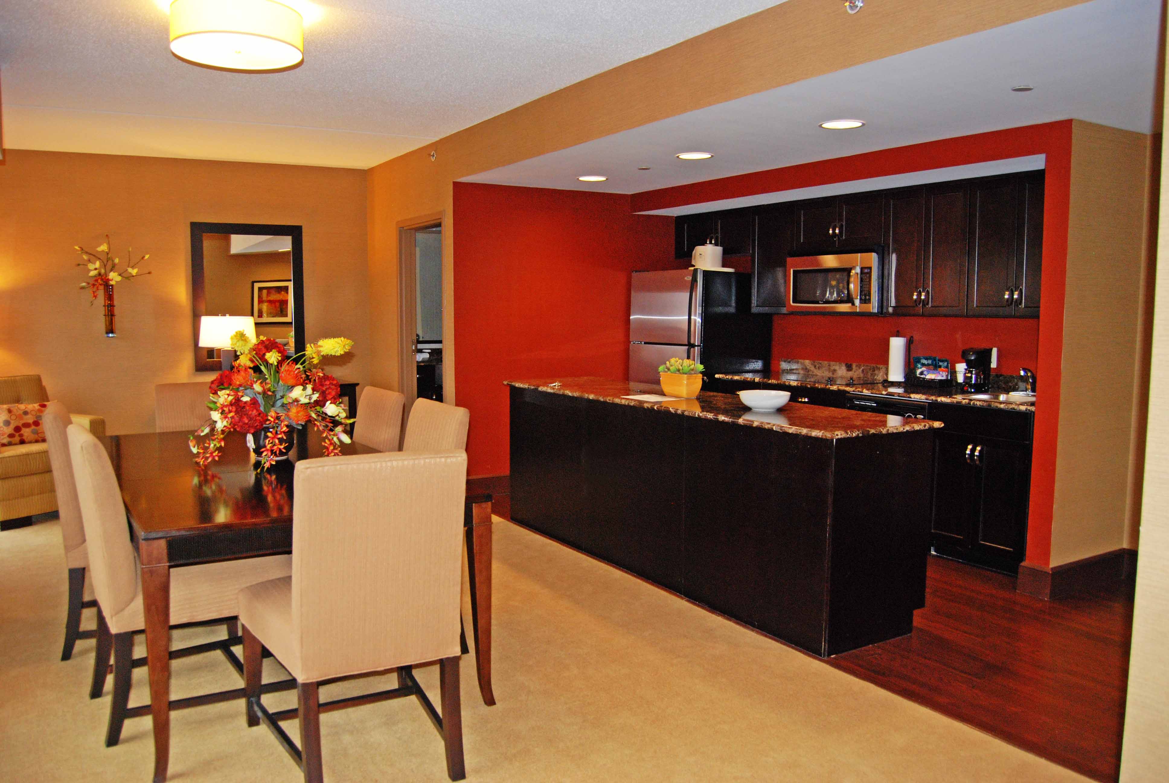 The hotel features three spacious suite types with fully-equipped kitchens. The suites include high end finishes and furnishings that create a home-like atmosphere for the traveler. Two custom Executive Suites are located on the 5th floor and were designed to create separate areas for entertaining, relaxing and working.