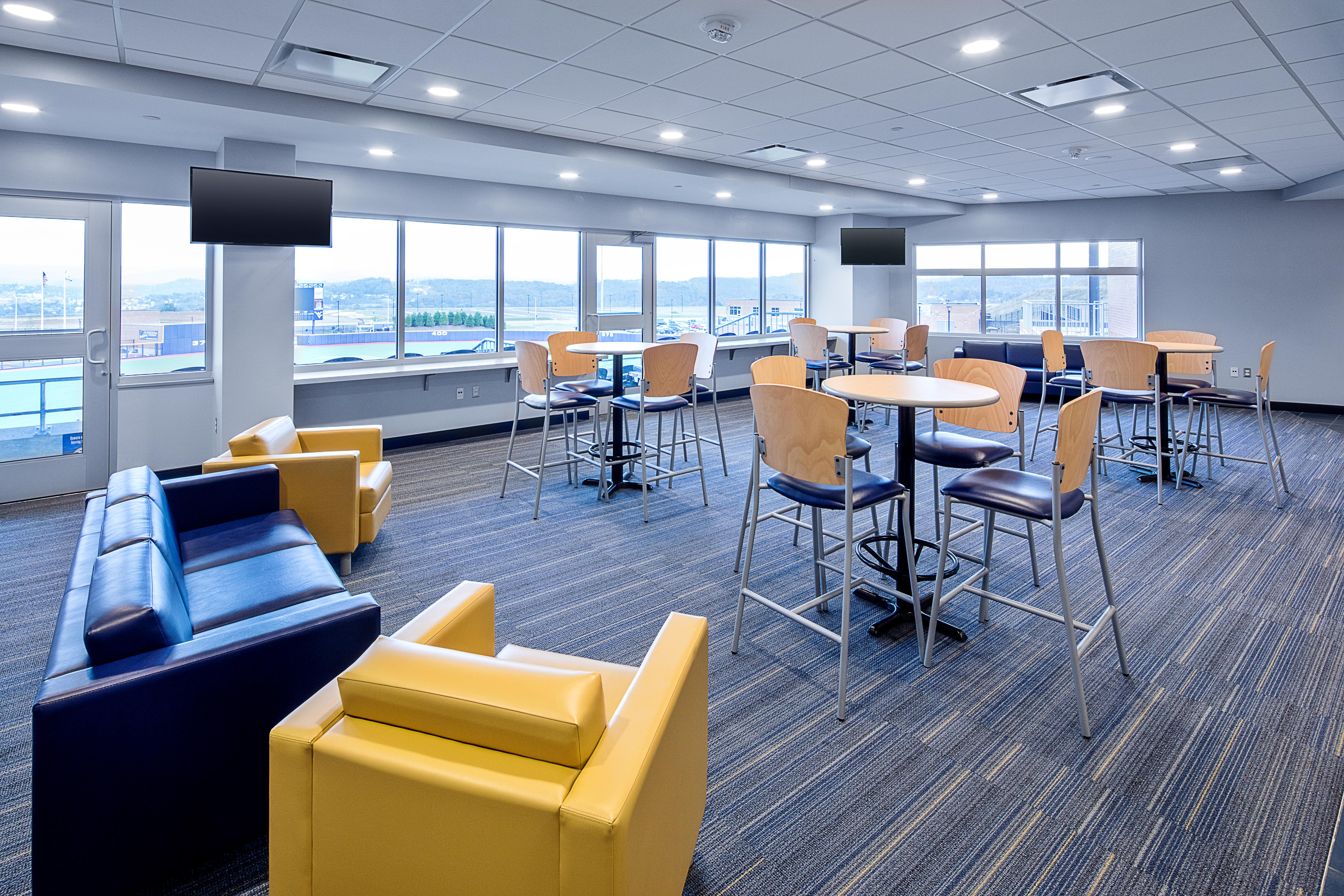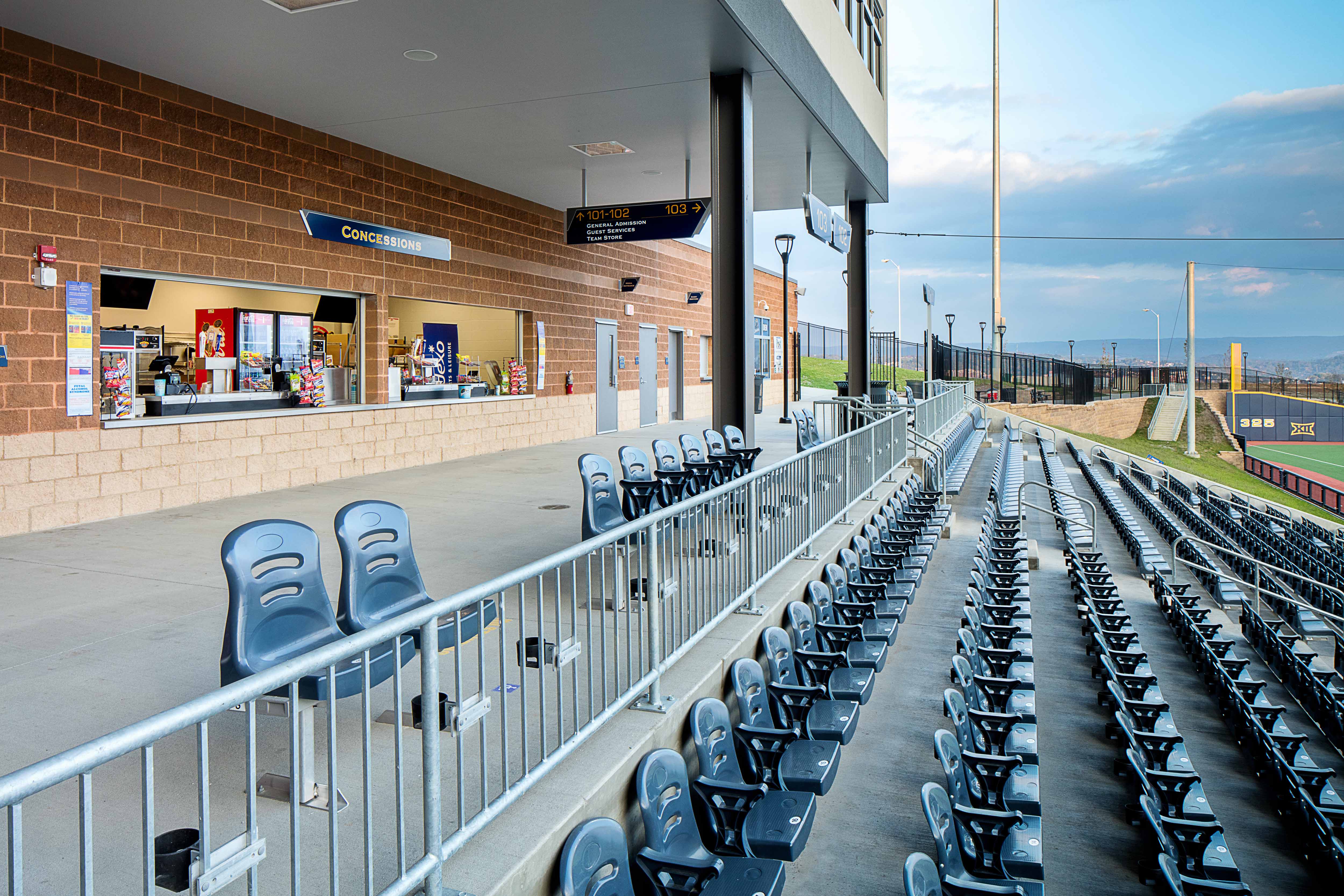 While construction was underway and design was being finalized, the New York-Penn League Jamestown Jammers announced that they would be moving the team to Morgantown. The team would later become the West Virginia Black Bears and make their home at the new park. The completed ballpark allows approximately 3,500 fans to enjoy a game from the grandstand seating bowl that runs the span of the infield, club/ suite, or lawn berm seating space. A party deck and field patio areas provide flexible seating. Concession stands and a team store are located along the concourse level behind the seating bowl. The stadium features the latest in audio / visual amenities and a press box and press support facilities for both radio and TV. In addition to a WVU team clubhouse, player lounge, equipment room, and team meeting space, there is a separate space for the minor league clubhouse and offices. The two teams share the training and hydrotherapy rooms.
