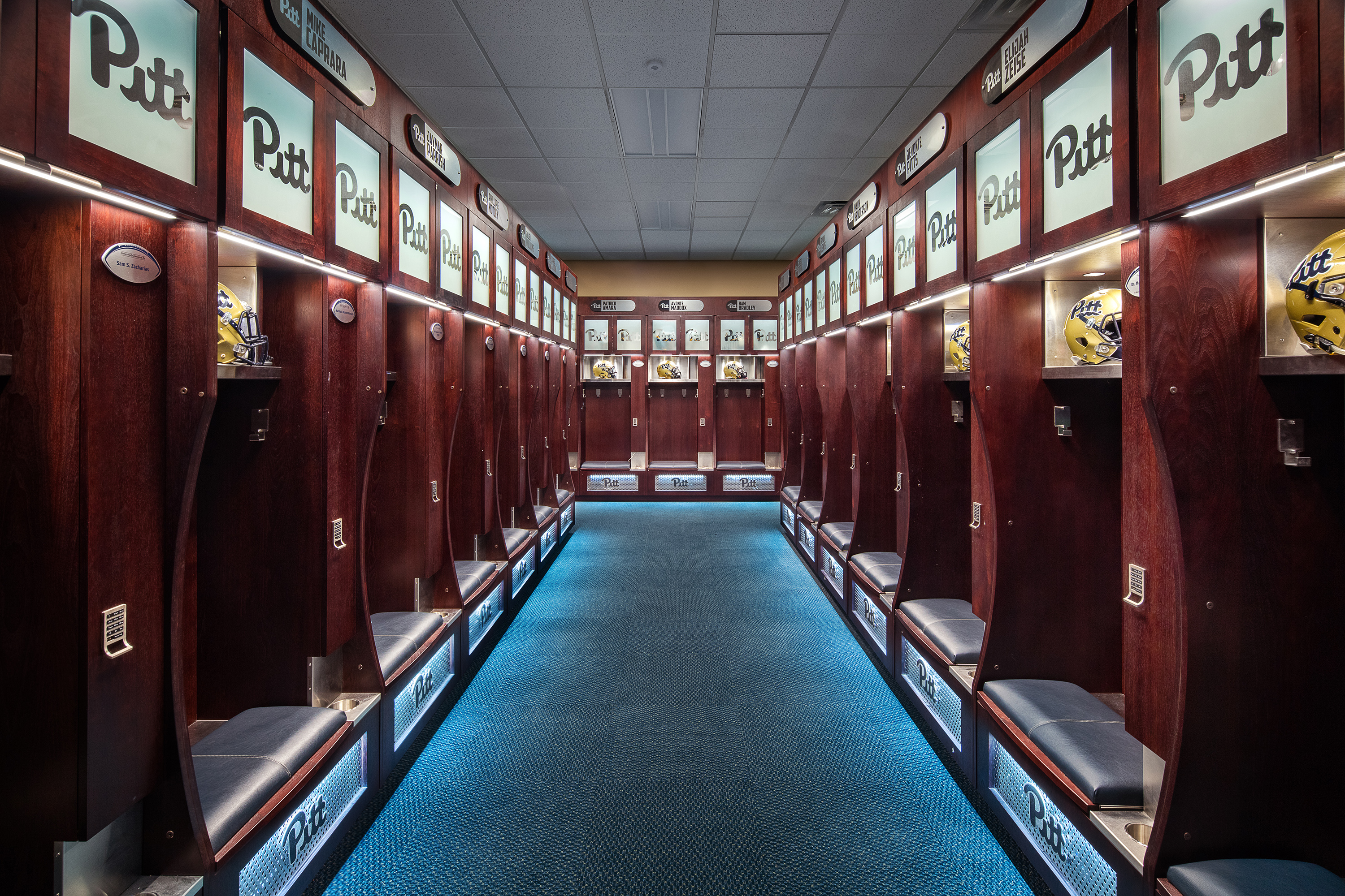 DLA+ provided design services for the renovations of the locker room, team meeting room, staff meeting room, and player lounge for the University of Pittsburgh football team at their training facility at the UMPC Rooney Sports Complex (formerly UPMC Sports Performance Complex).