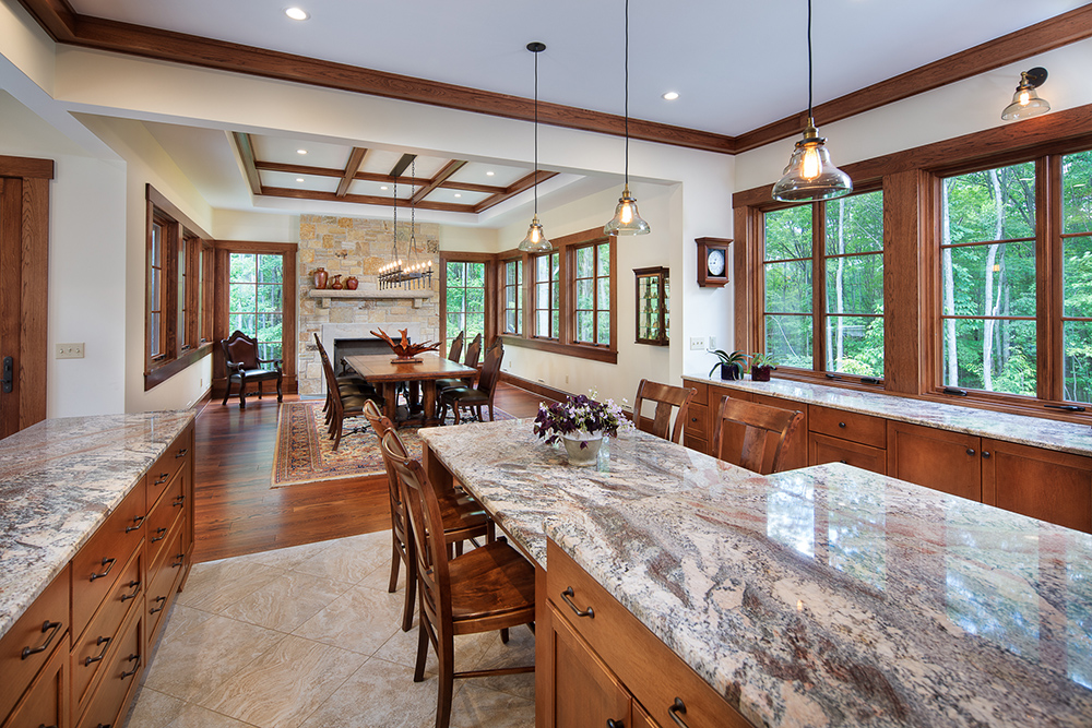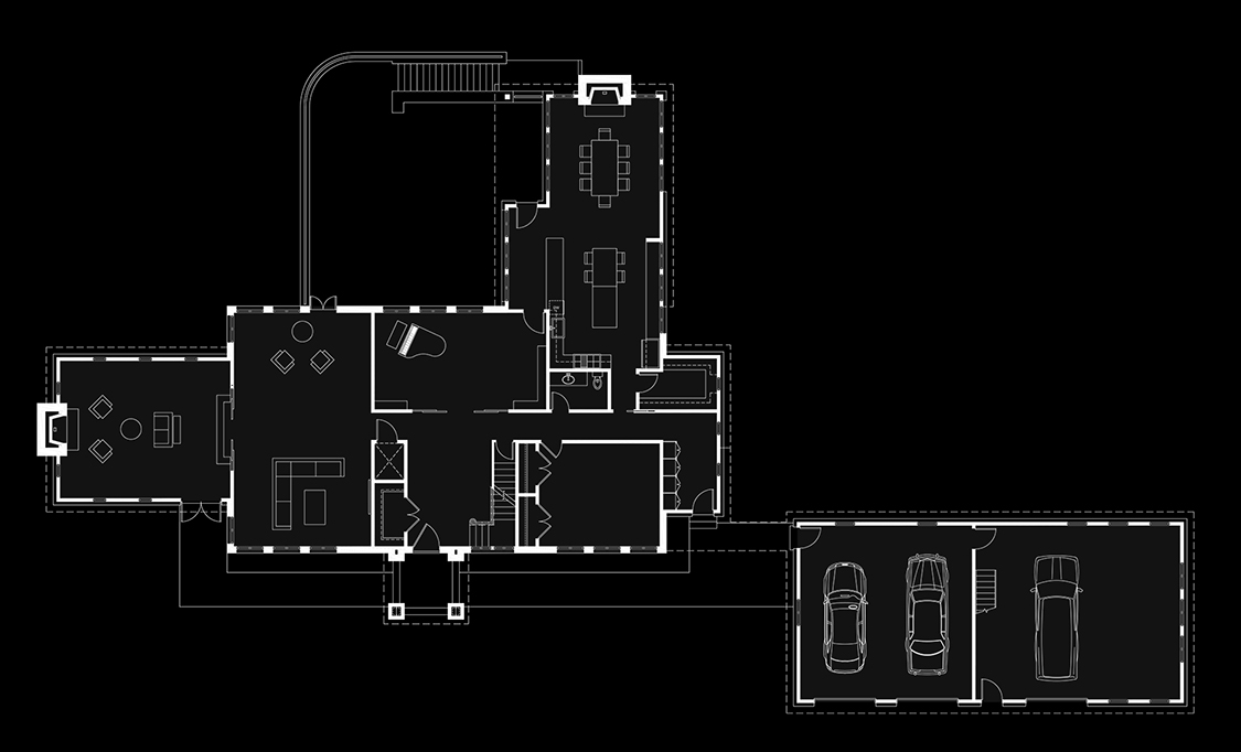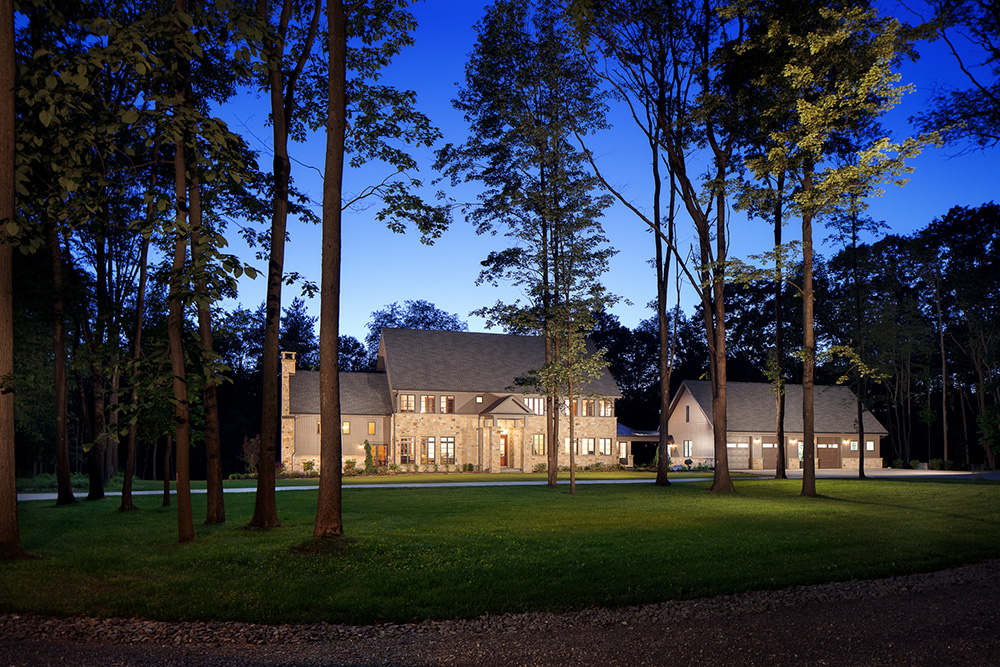 The homeowner asked DLA+ to design a custom two-story residence on the family’s large rural wooded lot. The approximately 7,900 SF finished home provided 4 bedrooms, 2 ½ baths, 3 car garage/shop, and space for the residents’ interests including classical music, sportsmanship, oil painting and mechanics. The design team crafted a program and concept to incorporate these spaces while maintaining the site’s wooded surroundings to provide privacy and emphasize the natural beauty. The lower level features an art room. On the main level, a music room and library feature a baby grand piano and the trophy room highlights game with a cathedral ceiling and authentic mortise & tenon timber trusses. An elevated stone covered terrace provides additional opportunities to take in the wooded vistas. By focusing on lifestyle, the project helped the family transition from their urban residence to a rural home in northern Pennsylvania.