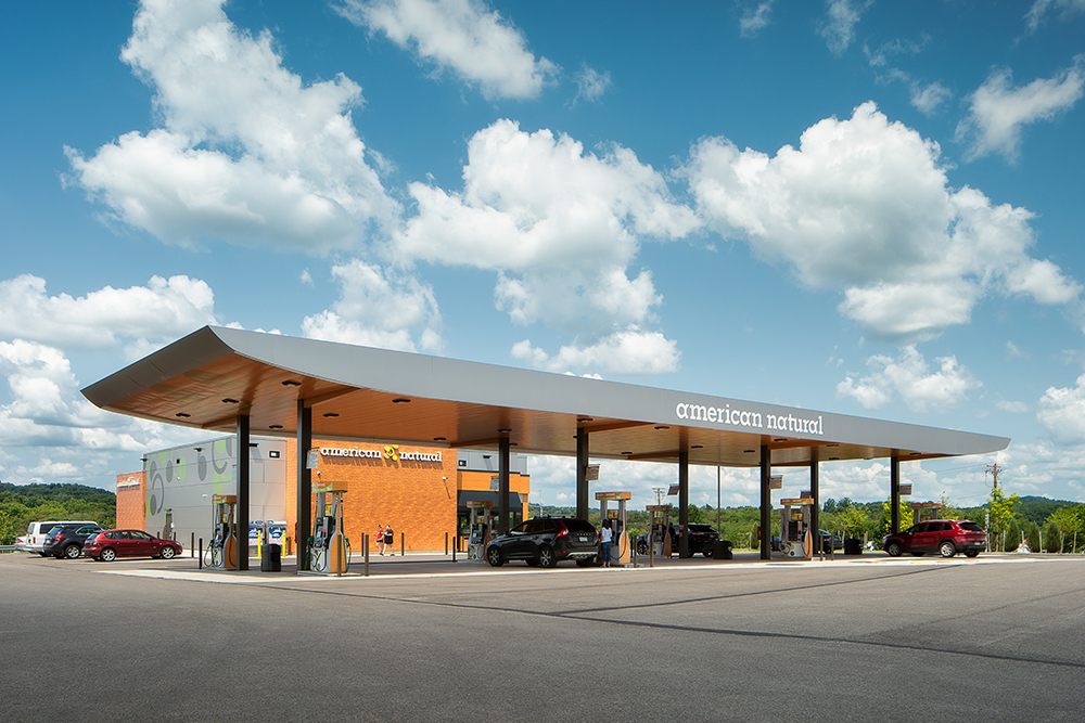 American Natural focuses on the modern consumer by providing access to cleaner, more economic fuel and healthier food options than traditional c-stores. The retail/convenience store’s goal was to create a fresh and inviting space for customers.
