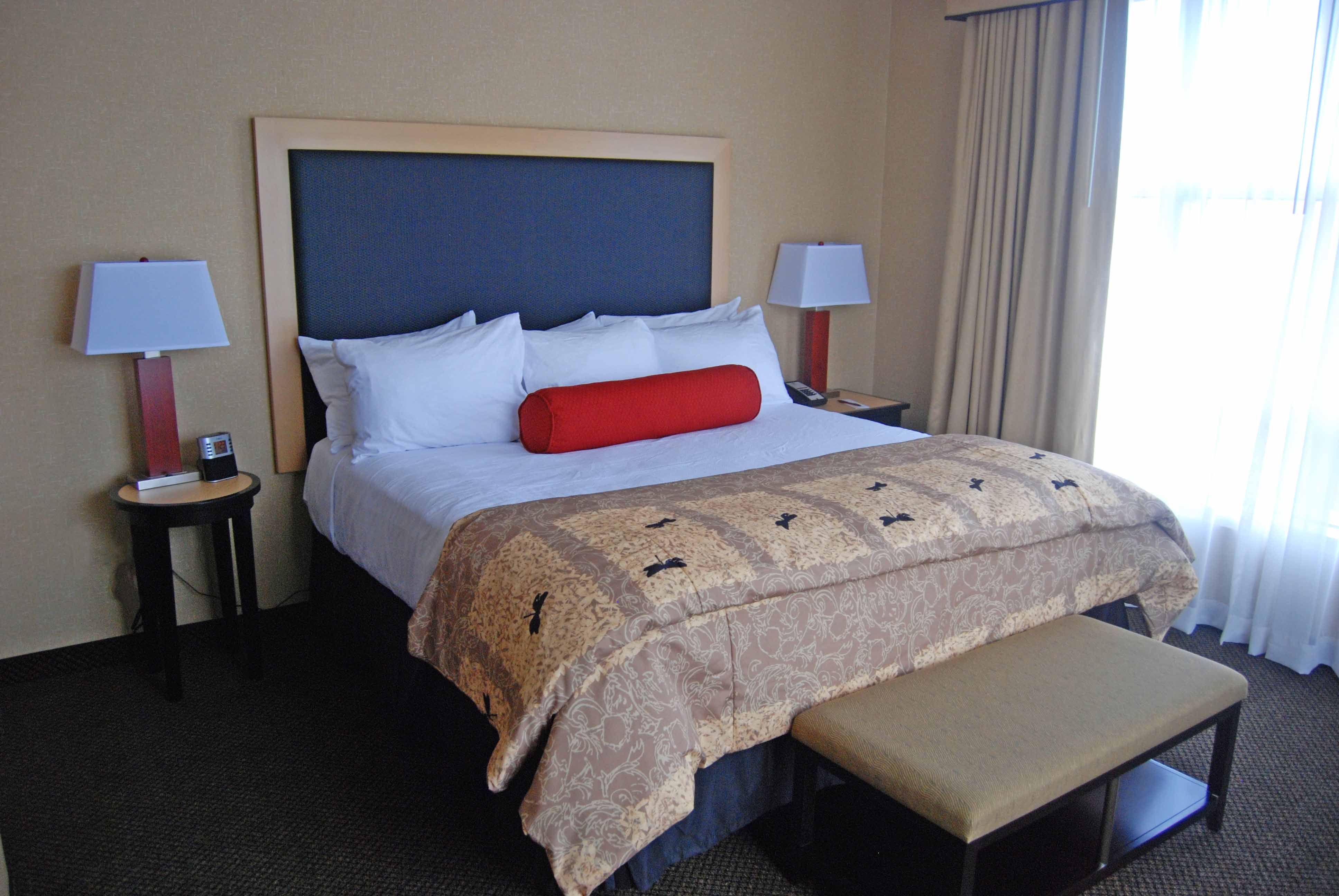 The hotel includes five suite types; Executive King Suite, King Suite, Double Queen Suite, Two Bedroom Suite and One Bedroom Suite. The suites are design with contemporary finishes and furnishings and include separate spaces for working and relaxing. The suite amenities include, flat screen televisions, wired and wireless internet connections and kitchenette.
