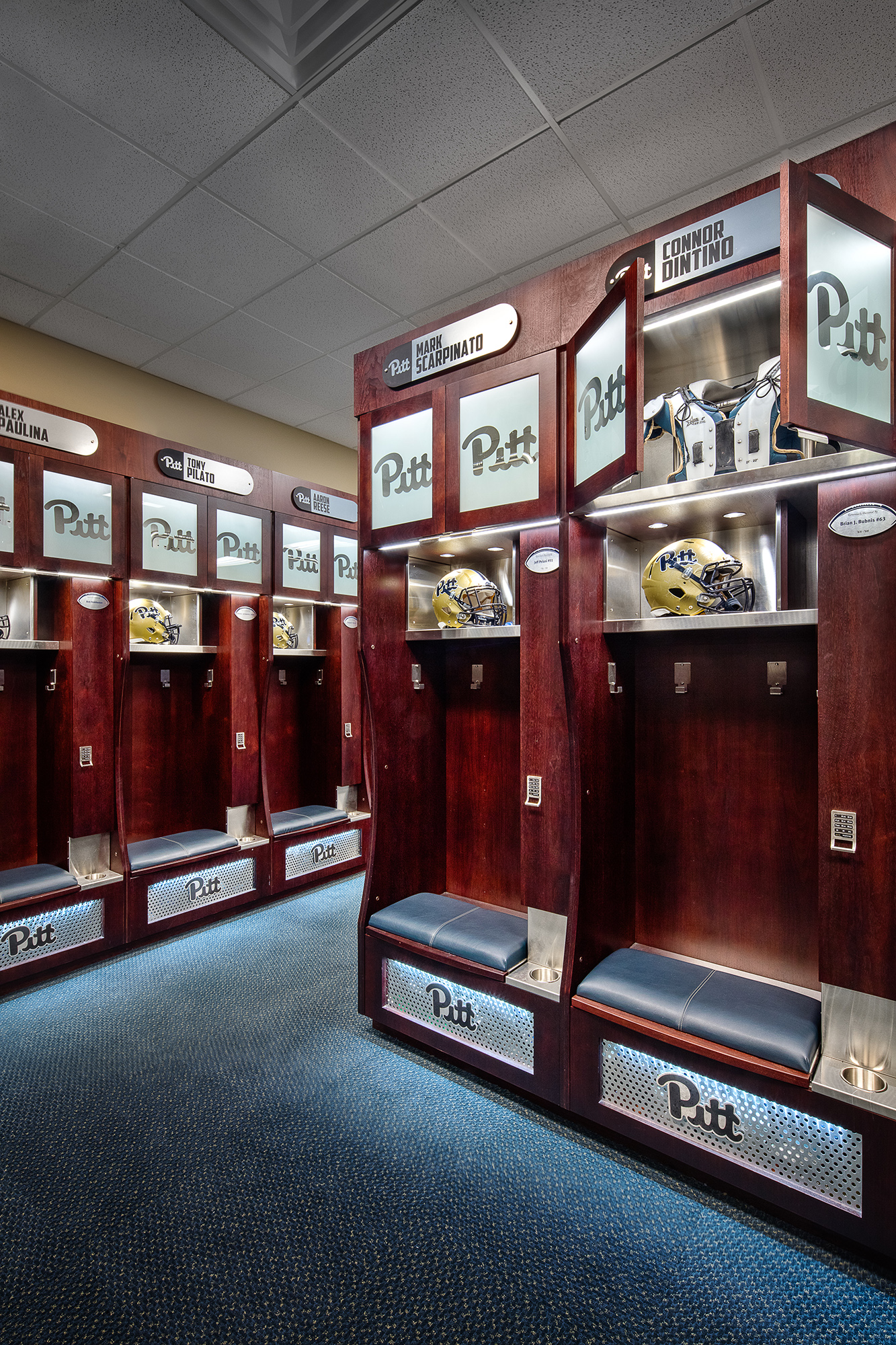 DLA+ provided design services for the renovations of the locker room, team meeting room, staff meeting room, and player lounge for the University of Pittsburgh football team at their training facility at the UMPC Rooney Sports Complex (formerly UPMC Sports Performance Complex).