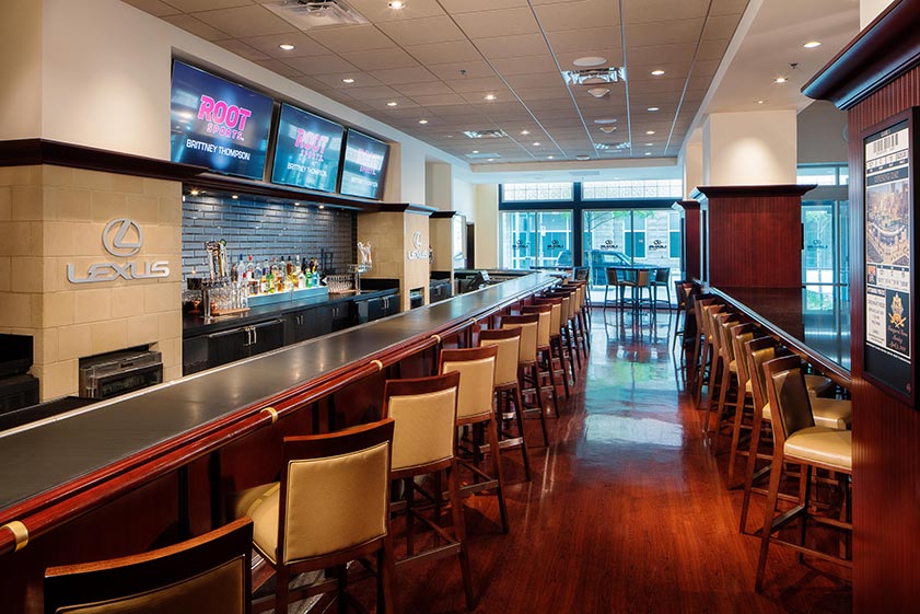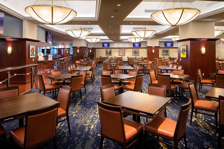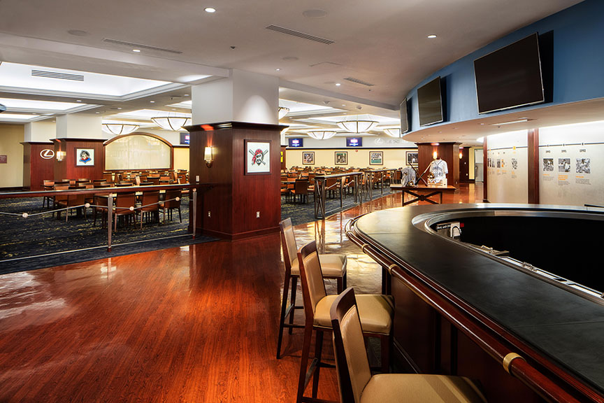 The Pirates asked DLA+ to work with Populous on the renovations of the Home Plate Club at PNC Park. Our scope included interior design and furniture selection for the dining room, bar, toilet rooms and grab-and-go areas. The design included new high-end finishes and furnishings, custom millwork, and technology integration, including new LED televisions and USB charging stations at the bar, as well as incorporating existing and new team branding, artwork, and memorabilia.